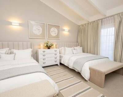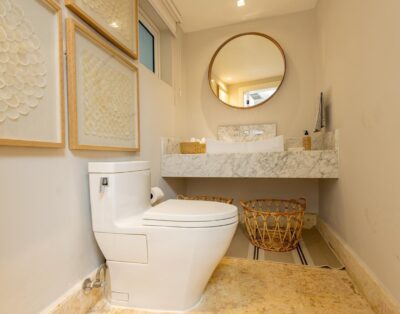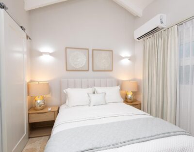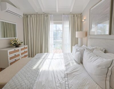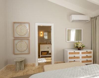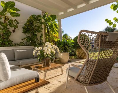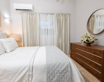 La location Casa Bahia Azul Casa de Campo propose cinq chambres spacieuses, toutes orientées vers l’océan ou les jardins tropicaux. Les plafonds cathédrale renforcent la sensation d’espace et de fraîcheur. La suite principale se distingue par sa terrasse privée face à la mer, idéale pour un café au lever du soleil.