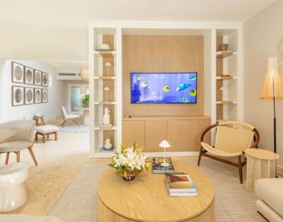 La location Casa Bahia Azul Casa de Campo s’adresse aux voyageurs recherchant un luxe authentique et sans ostentation. Cette propriété en bord de mer figure parmi les villas privées les plus impressionnantes du resort. Son architecture ouverte évoque un pavillon tropical contemporain, baigné de lumière et de brises marines naturelles. Dès l’entrée, les volumes spectaculaires et les finitions en bois noble créent une atmosphère élégante et apaisante.