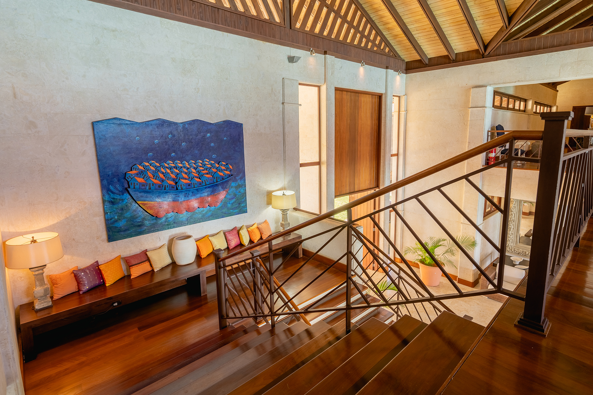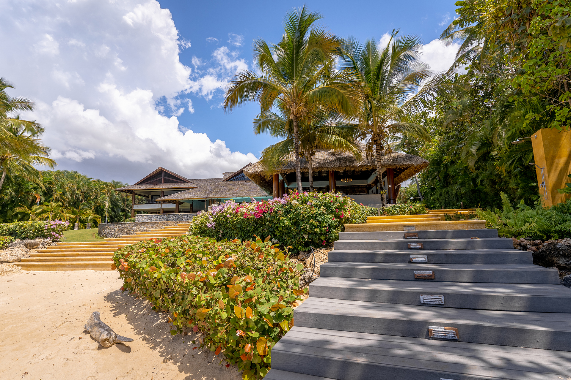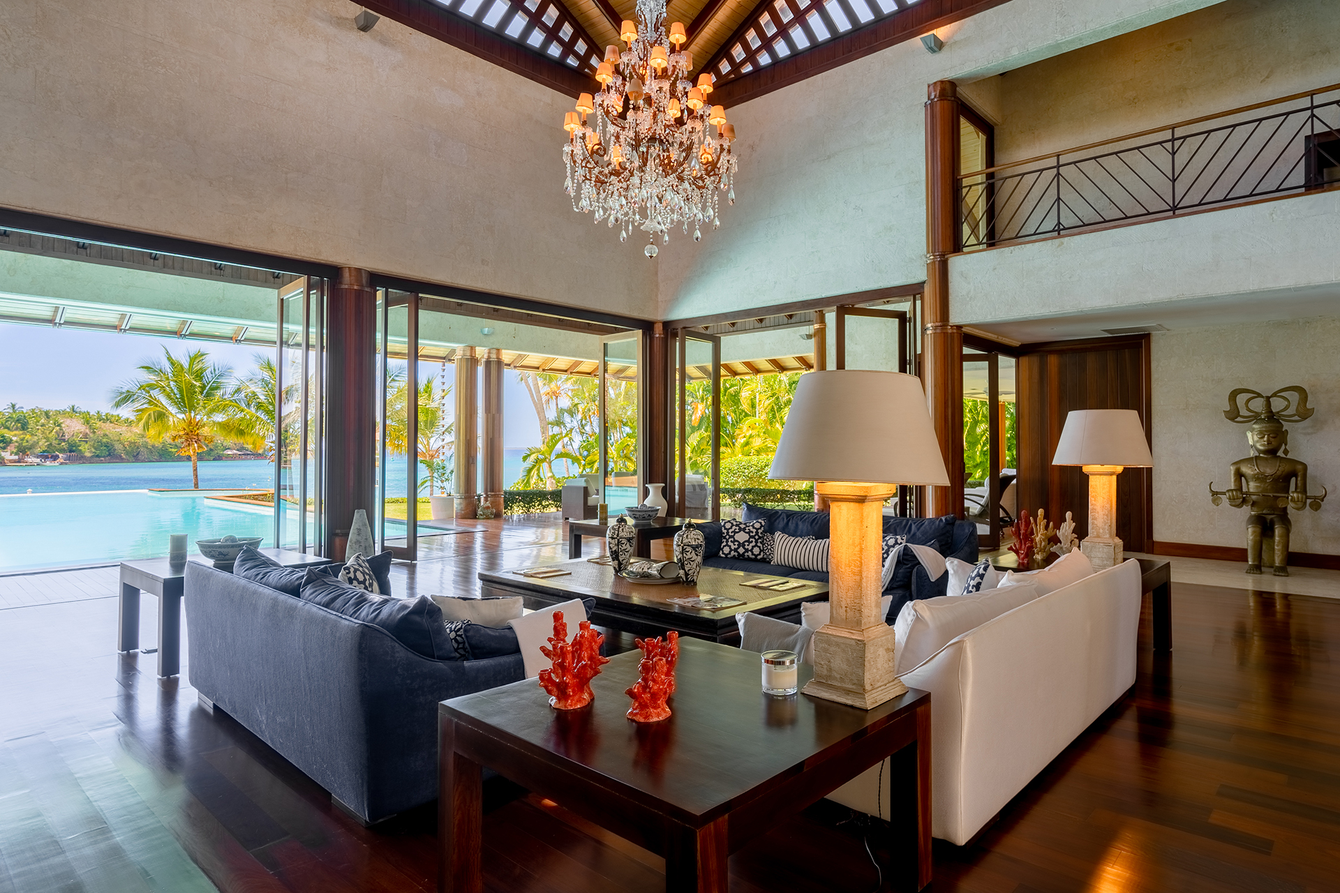 La location Casa Bahia Azul Casa de Campo s’adresse aux voyageurs recherchant un luxe authentique et sans ostentation. Cette propriété en bord de mer figure parmi les villas privées les plus impressionnantes du resort. Son architecture ouverte évoque un pavillon tropical contemporain, baigné de lumière et de brises marines naturelles. Dès l’entrée, les volumes spectaculaires et les finitions en bois noble créent une atmosphère élégante et apaisante.