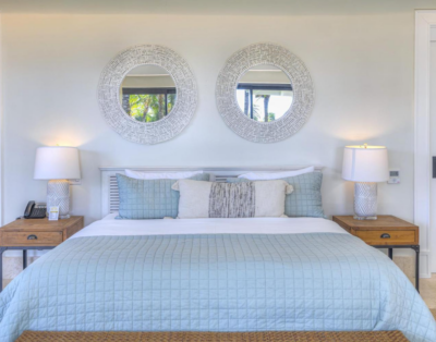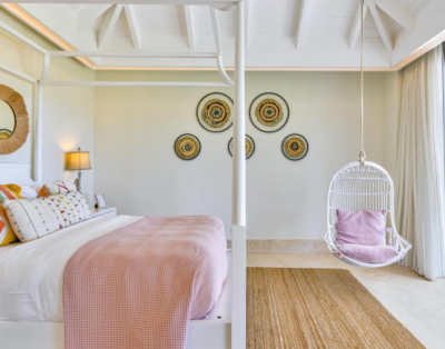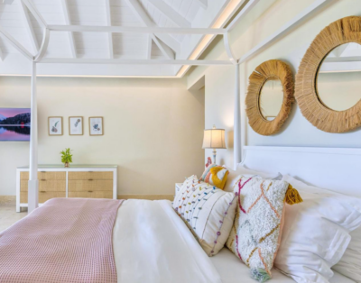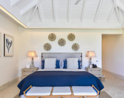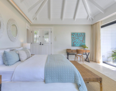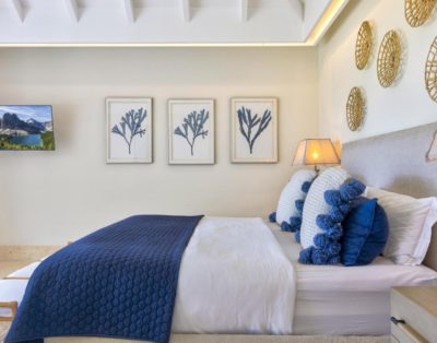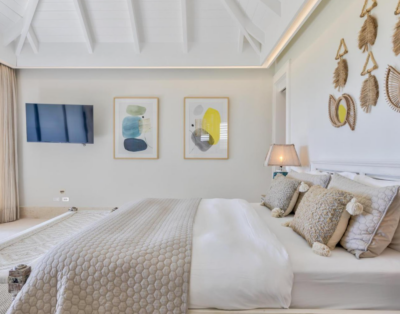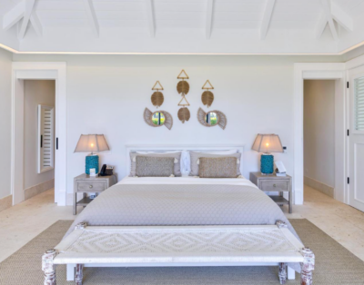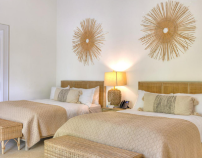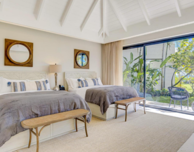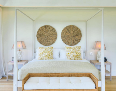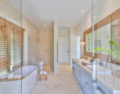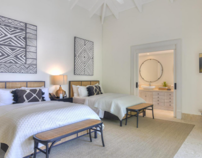 La villa dispose de cinq chambres avec salles de bain privatives, pensées comme de véritables cocons. Les lits king et queen offrent un confort optimal, tandis qu’une chambre avec lits superposés ravira les enfants. Les salles de bain, au style boutique, sont équipées de douches à effet pluie et de doubles vasques.
