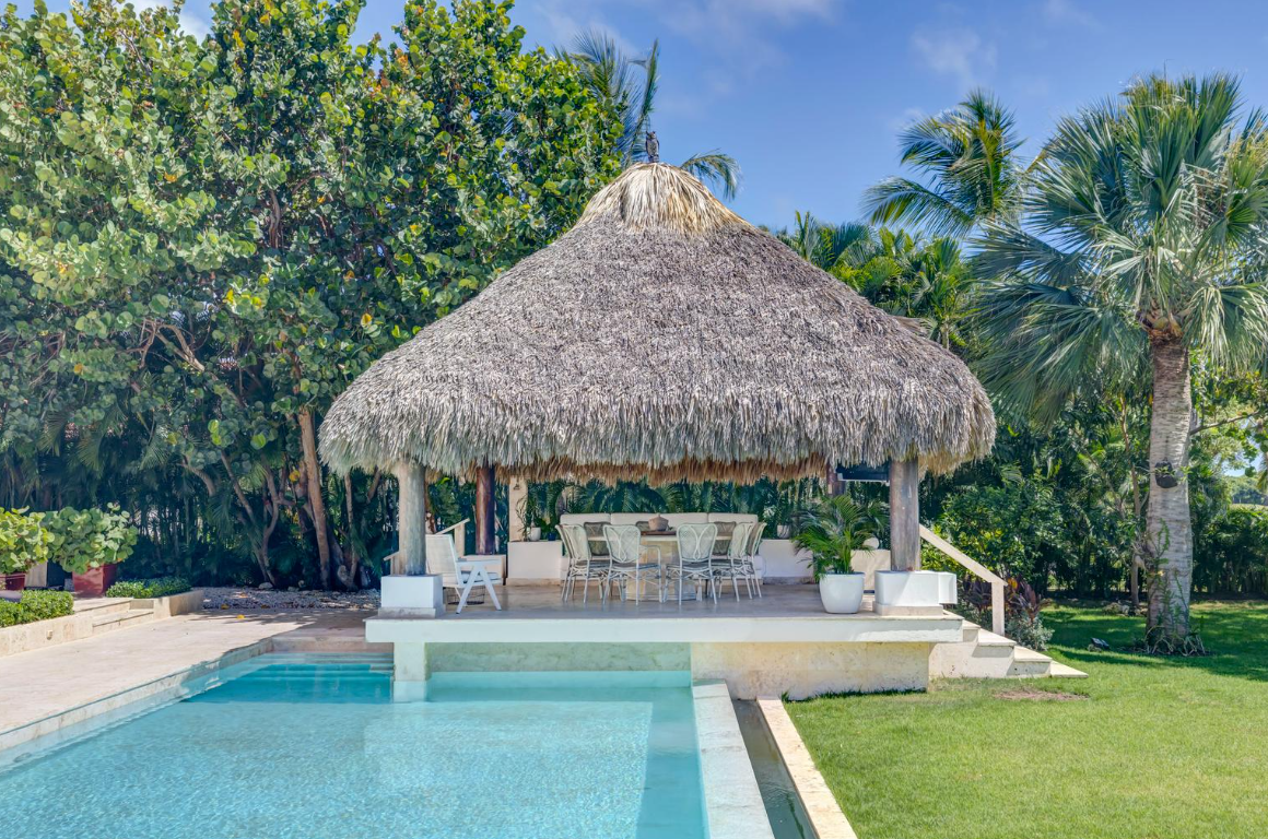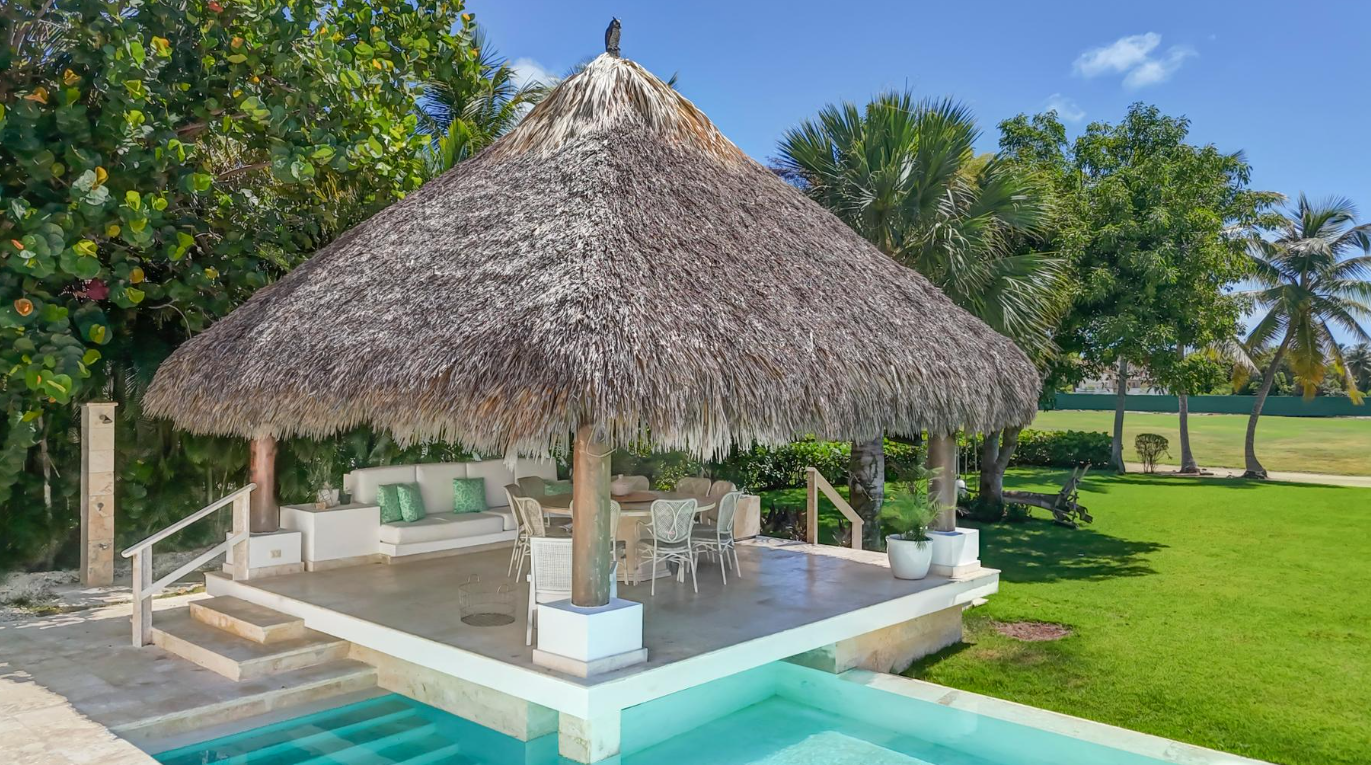 À l’extérieur, la piscine scintillante devient le cœur de la villa. Le jardin tropical soigneusement entretenu entoure un superbe palapa au toit de chaume, tandis que les espaces lounge invitent à la détente. La cuisine extérieure et le barbecue permettent d’organiser des soirées conviviales sous les étoiles.