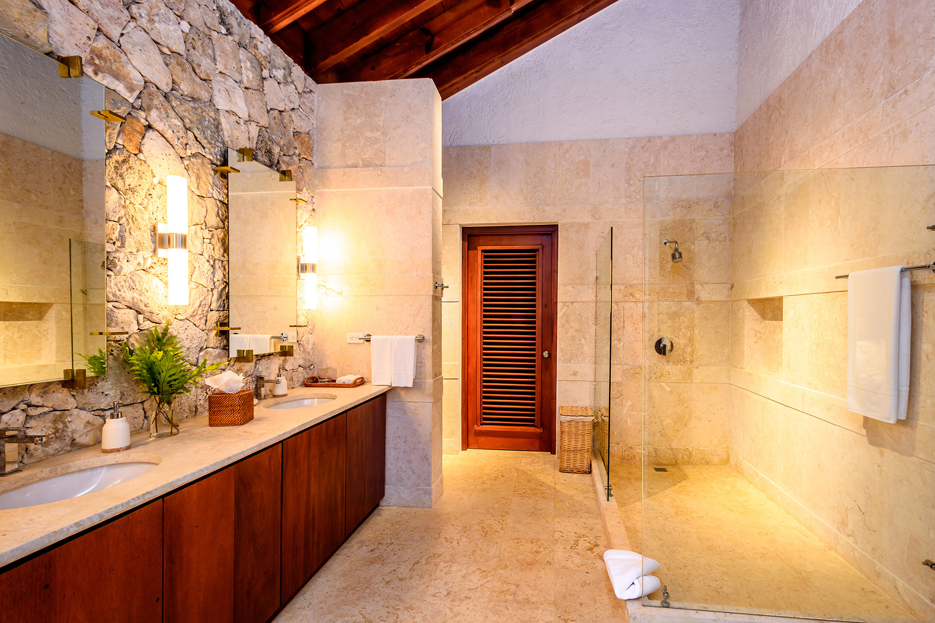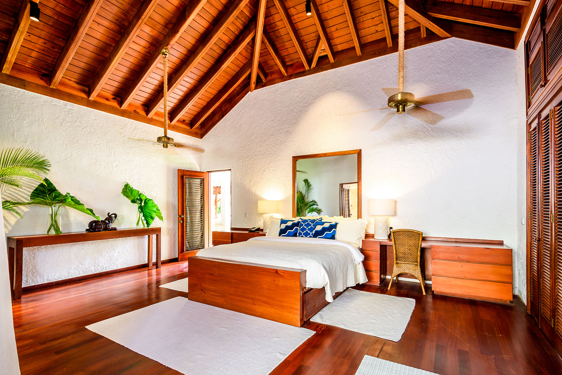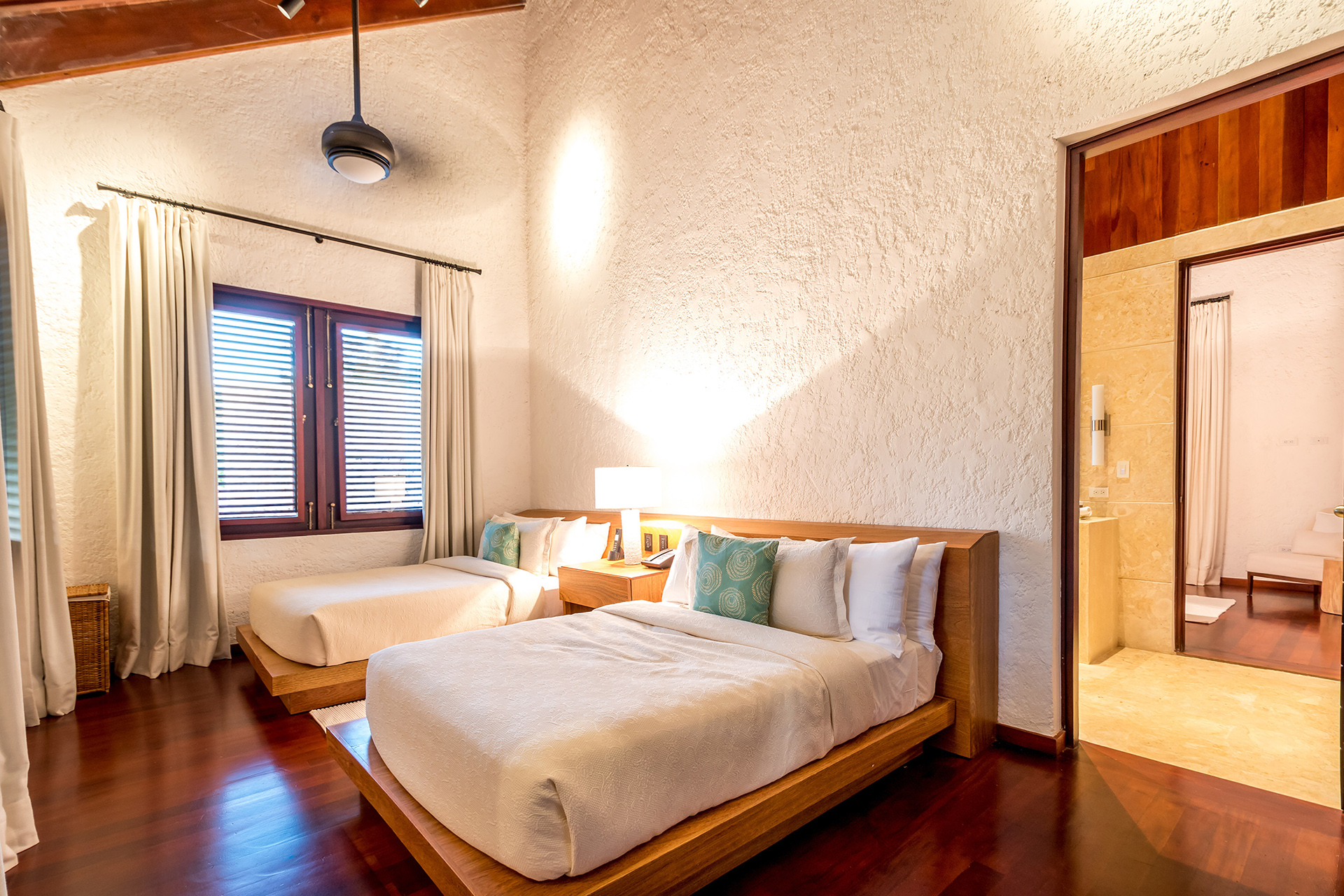 Les volumes généreux restent chaleureux grâce à une conception pensée pour la convivialité. La plage privée de sable blanc crée un privilège exceptionnel au sein du domaine. Les couchers de soleil caribéens rythment naturellement les moments partagés.