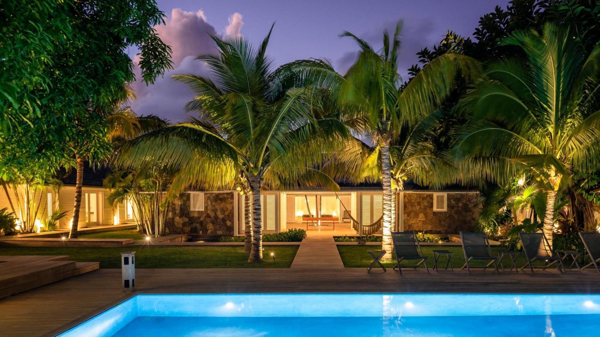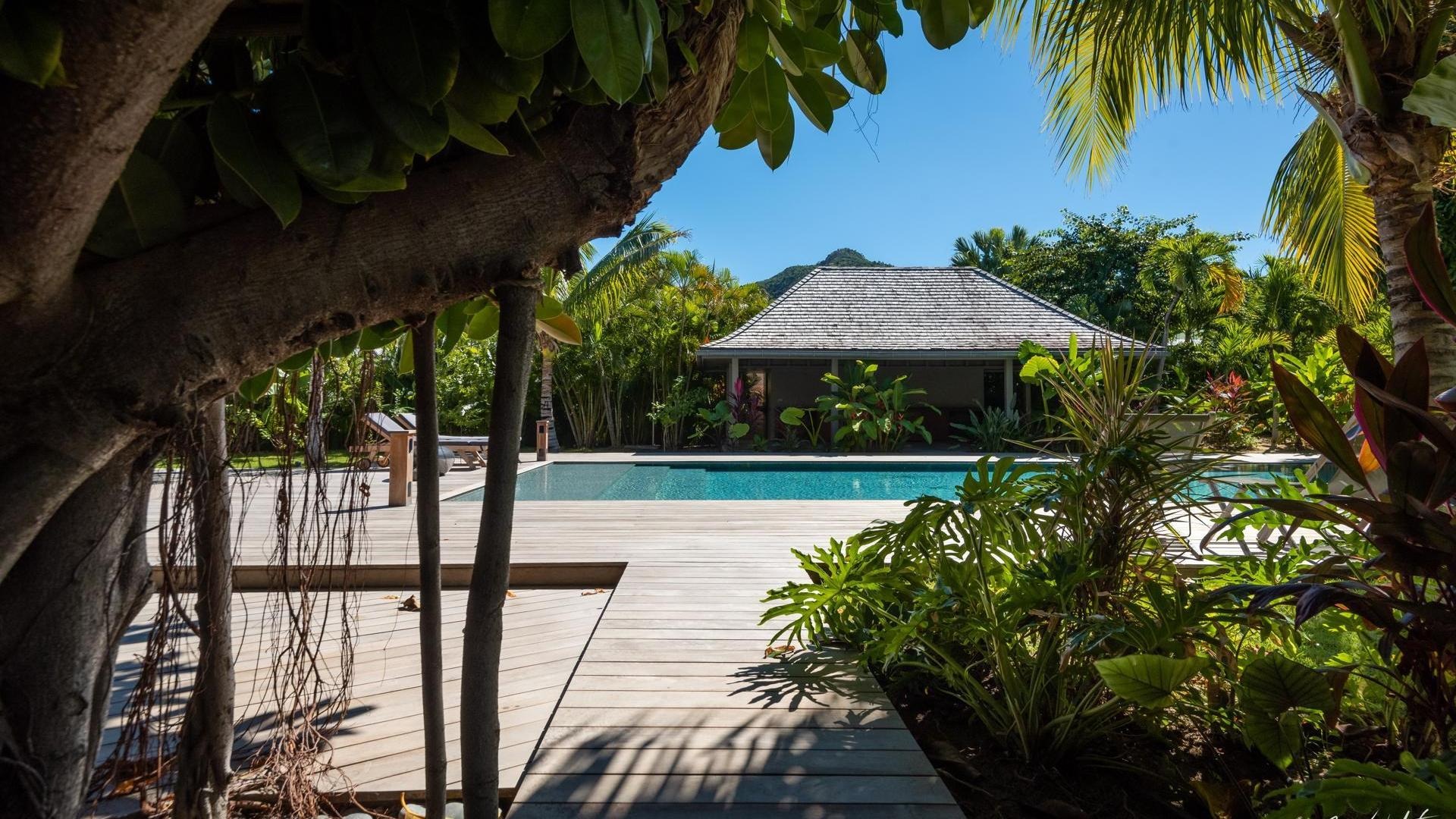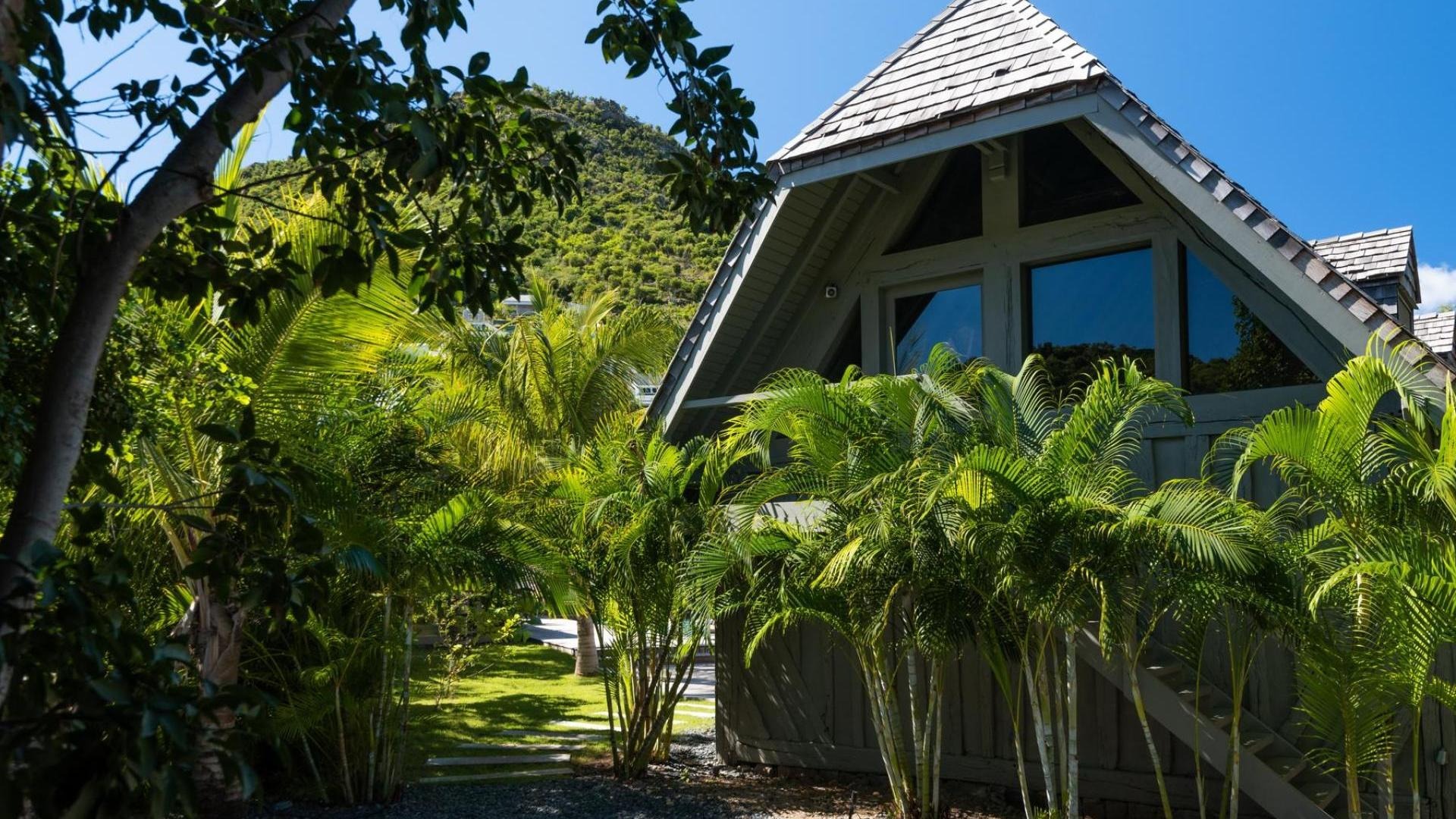 Un jardin tropical luxuriant entoure la villa et crée une atmosphère apaisante.
