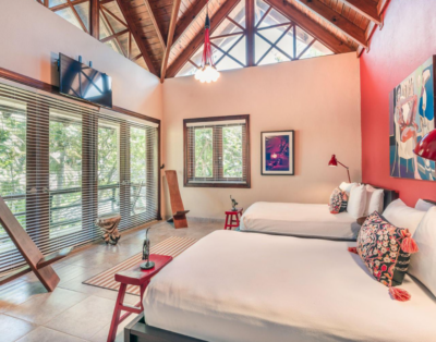 Les quatre suites accueillent jusqu’à dix voyageurs. La suite principale se distingue par son lit king-size à baldaquin, son dressing et sa salle de bain élégante avec baignoire circulaire. Les trois autres suites offrent également un confort premium. Grâce à ces aménagements, la villa convient aussi bien aux familles qu’aux groupes souhaitant vivre une expérience haut de gamme à Punta Cana.