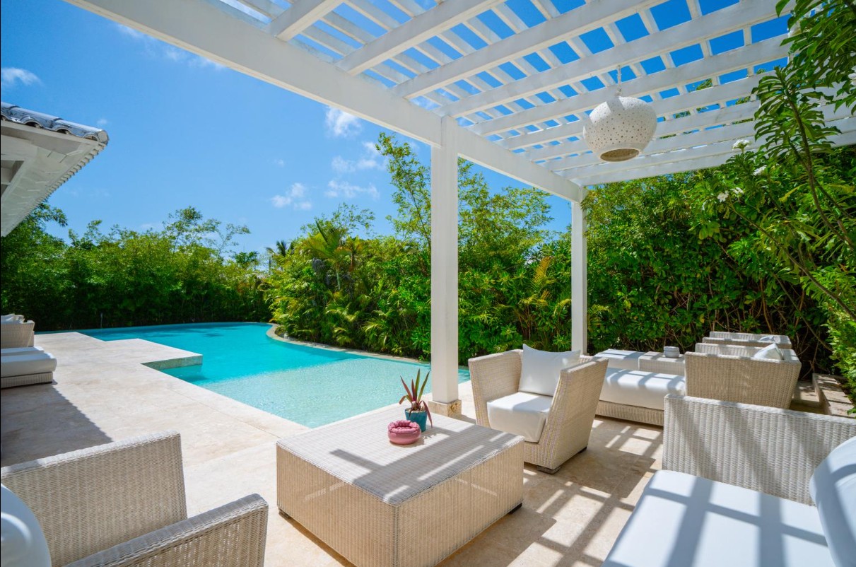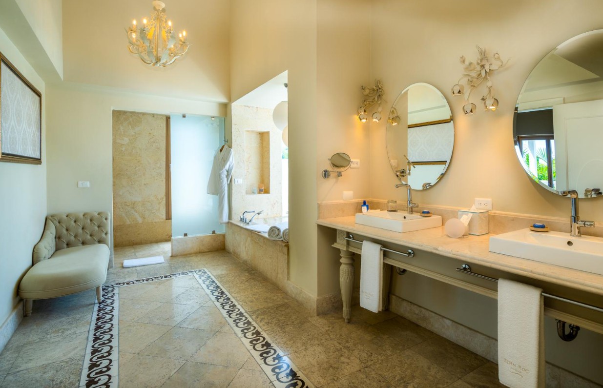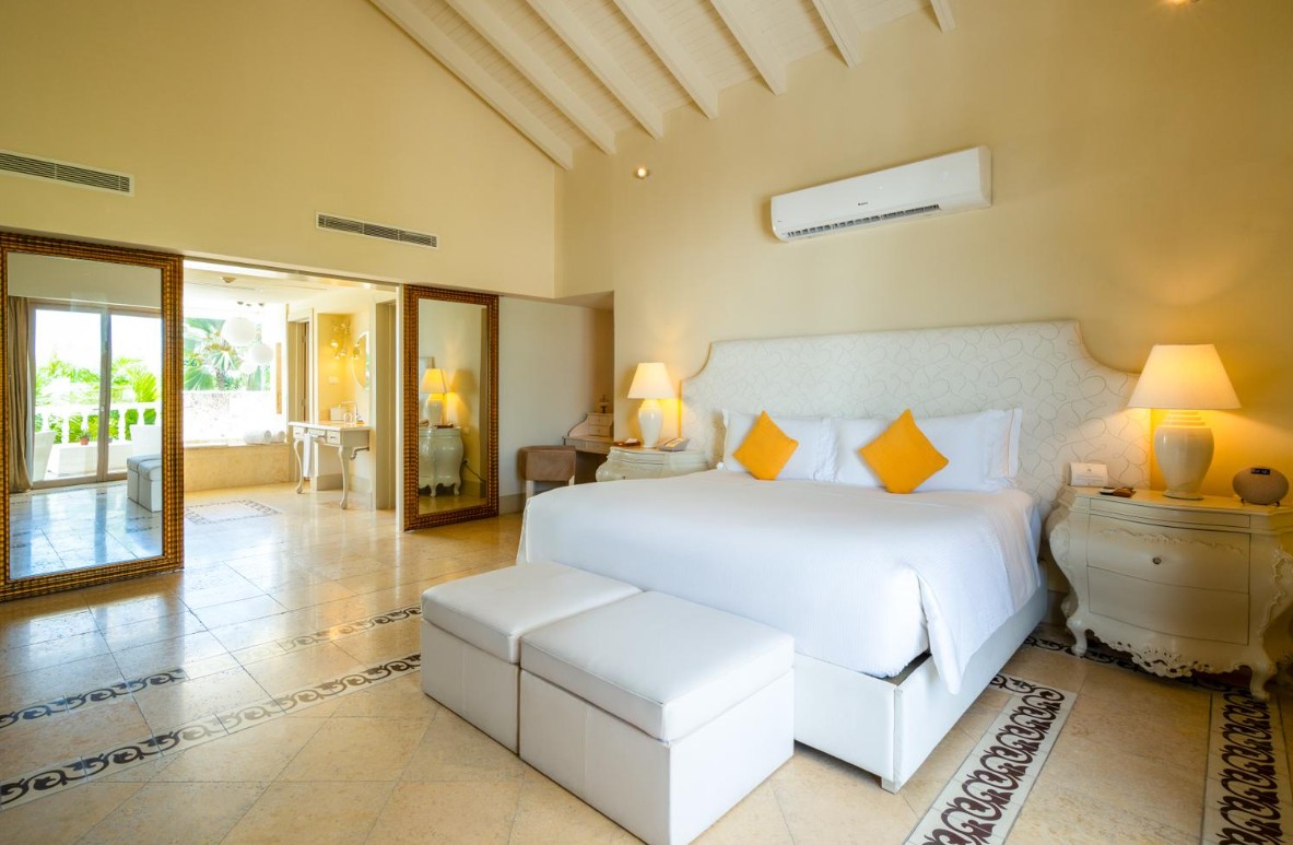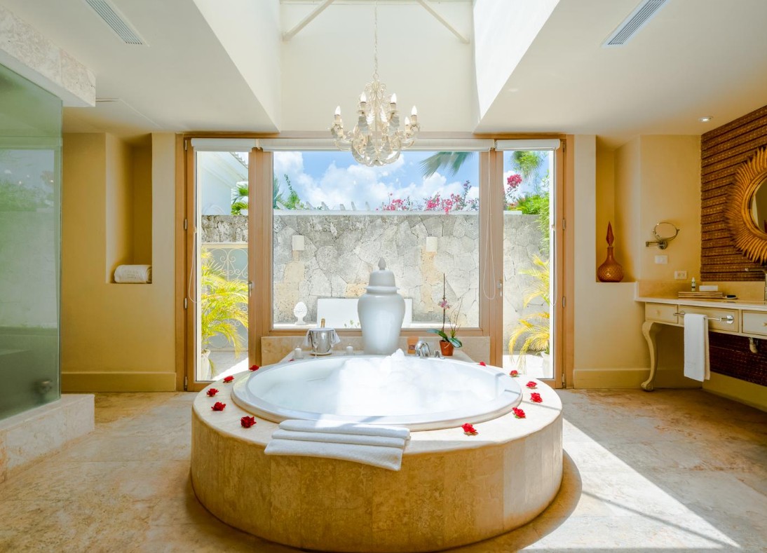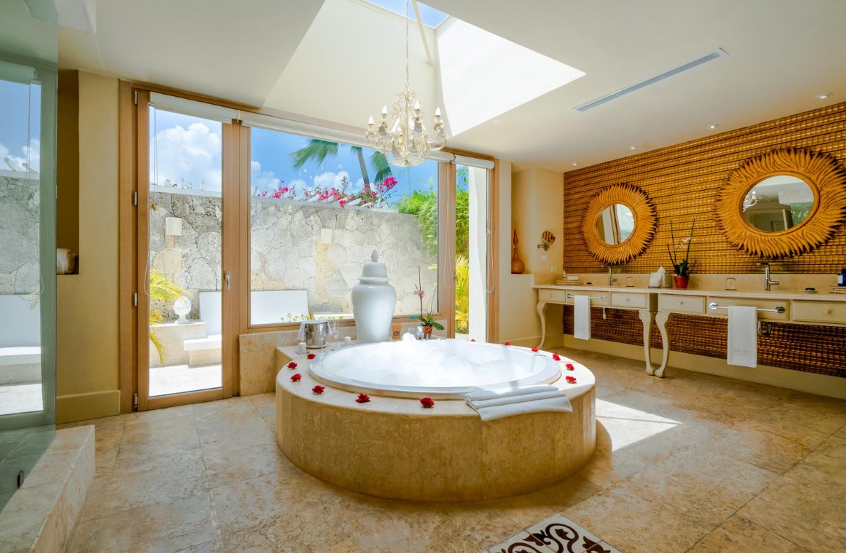 Les quatre suites accueillent jusqu’à dix voyageurs. La suite principale se distingue par son lit king-size à baldaquin, son dressing et sa salle de bain élégante avec baignoire circulaire. Les trois autres suites offrent également un confort premium. Grâce à ces aménagements, la villa convient aussi bien aux familles qu’aux groupes souhaitant vivre une expérience haut de gamme à Punta Cana.