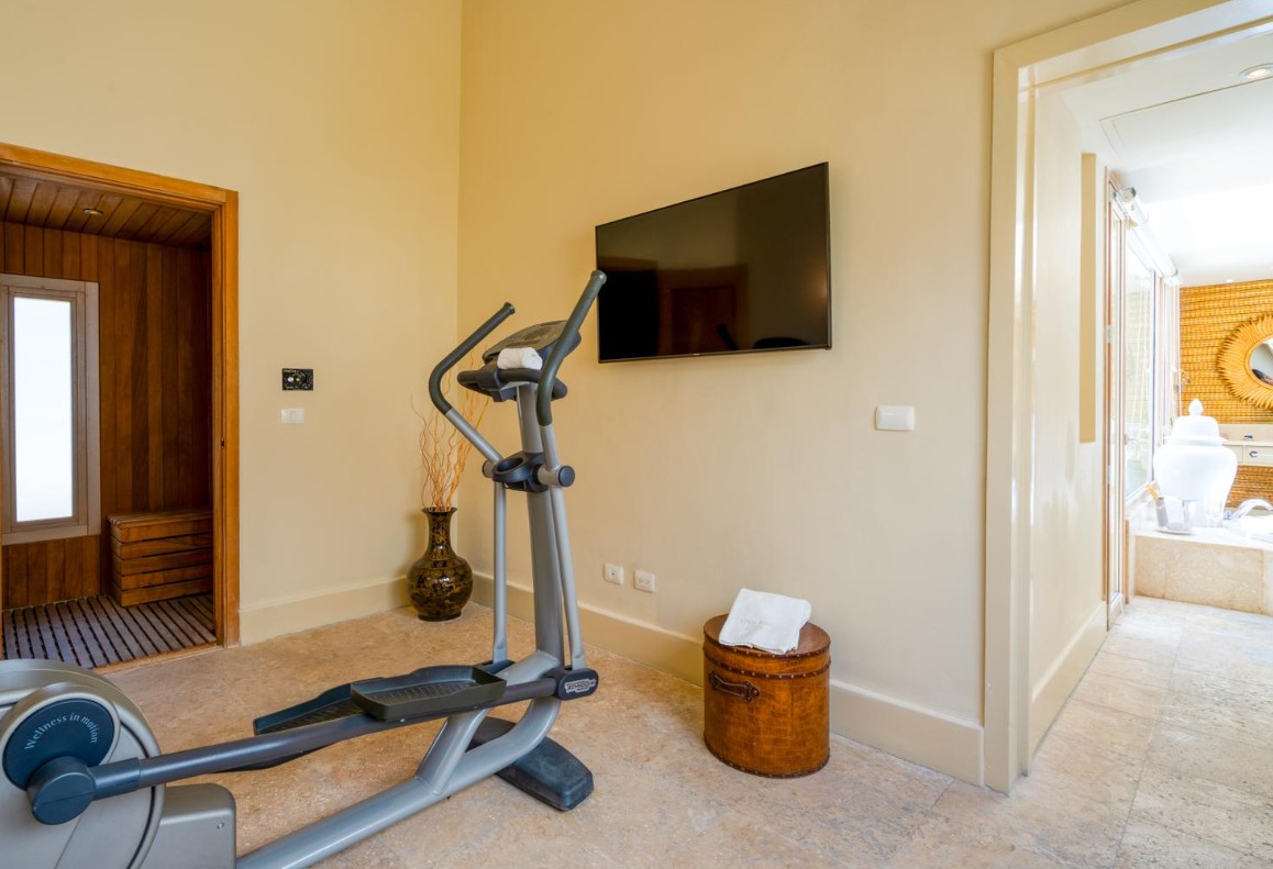 À l’extérieur, la piscine à débordement domine un paysage tropical apaisant. On y trouve aussi un gazebo, une douche extérieure et un espace spa. Le sauna privé apporte une dimension bien-être qui transforme chaque journée en parenthèse luxueuse. Ainsi, la villa devient un véritable sanctuaire, protégé et intime.