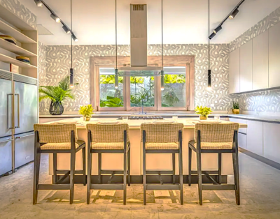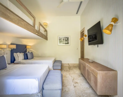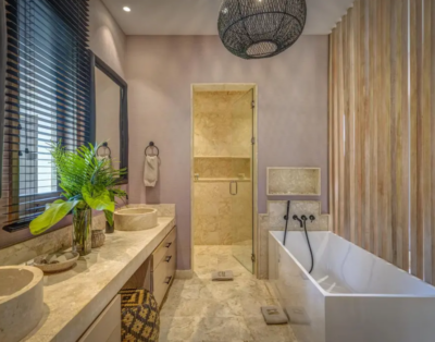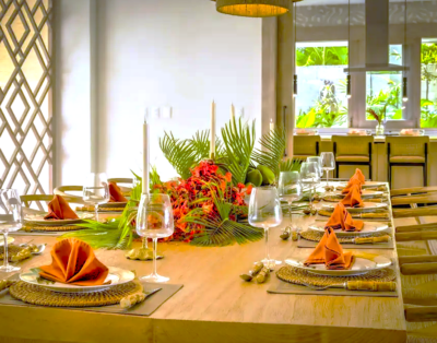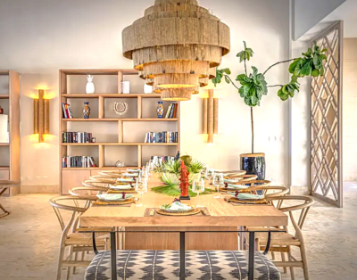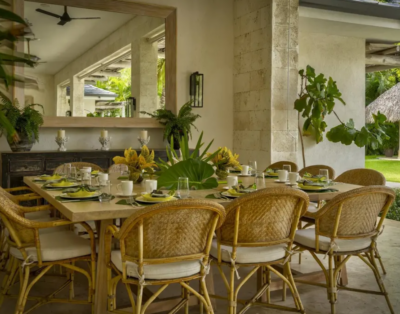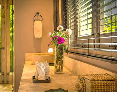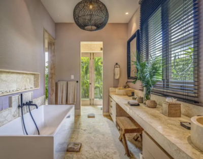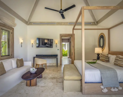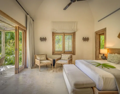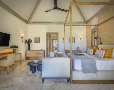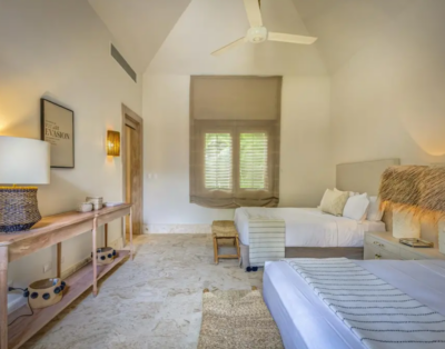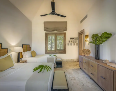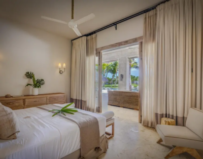 La suite principale accueille un lit king size et offre une vue dégagée sur l’océan. De plus, les quatre autres chambres disposent de lits queen confortables et d’un agencement équilibré. Chaque chambre intègre sa salle de bain privative, ce qui renforce l’intimité de chacun. Ainsi, la villa répond parfaitement aux attentes des groupes et des familles.