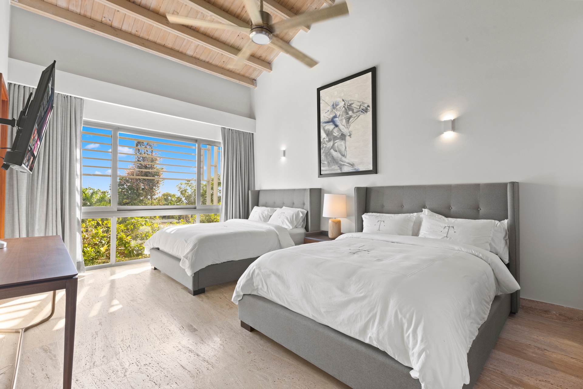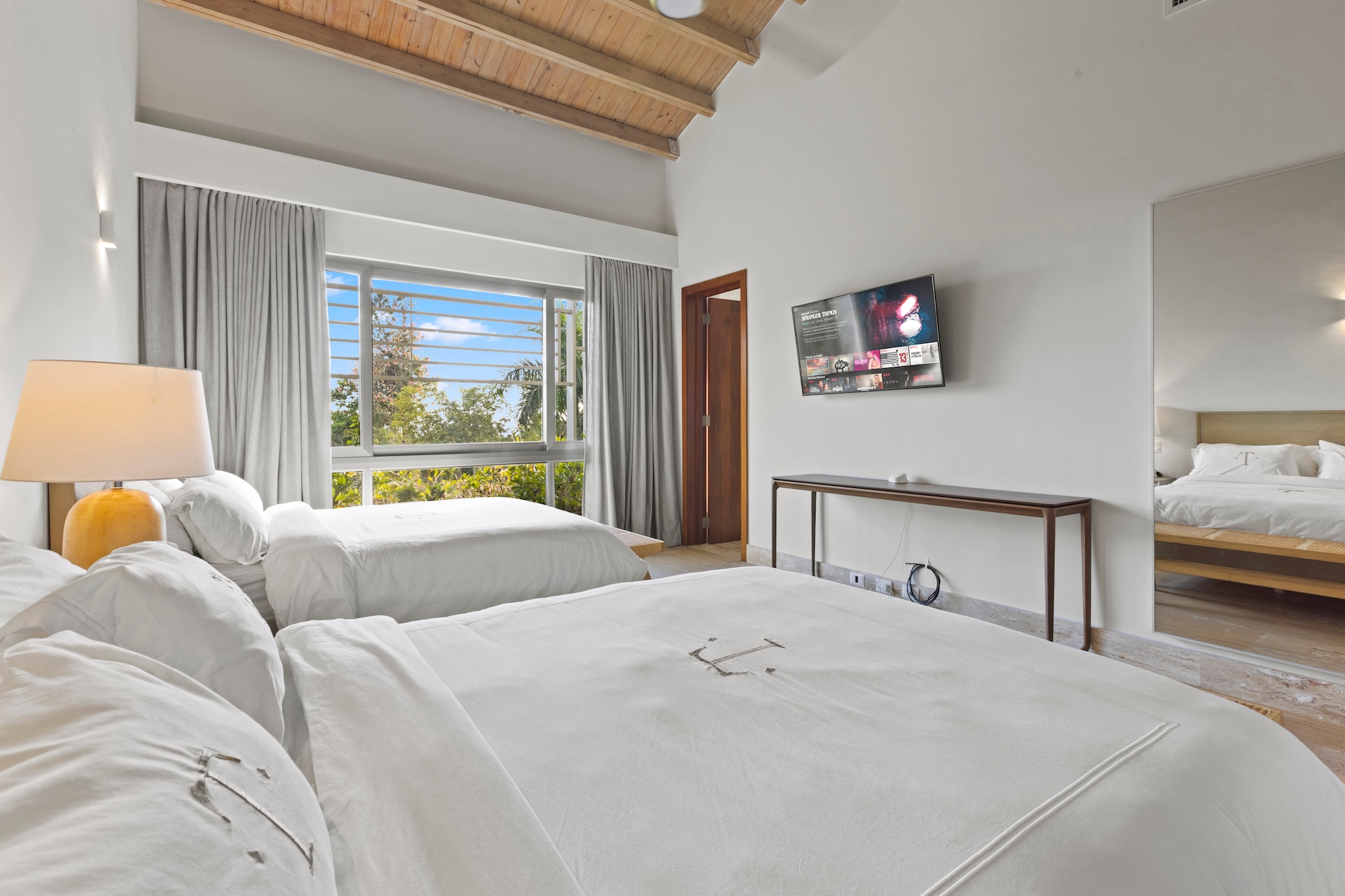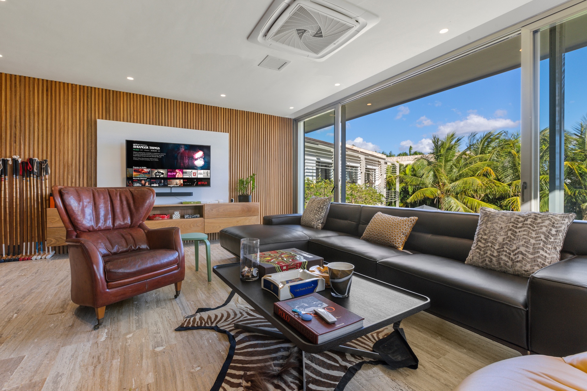 La villa dispose également de la climatisation, d’un Wi-Fi performant et d’un parking sécurisé, éléments essentiels pour une luxury villa rental in Casa de Campo répondant aux attentes d’une clientèle internationale.