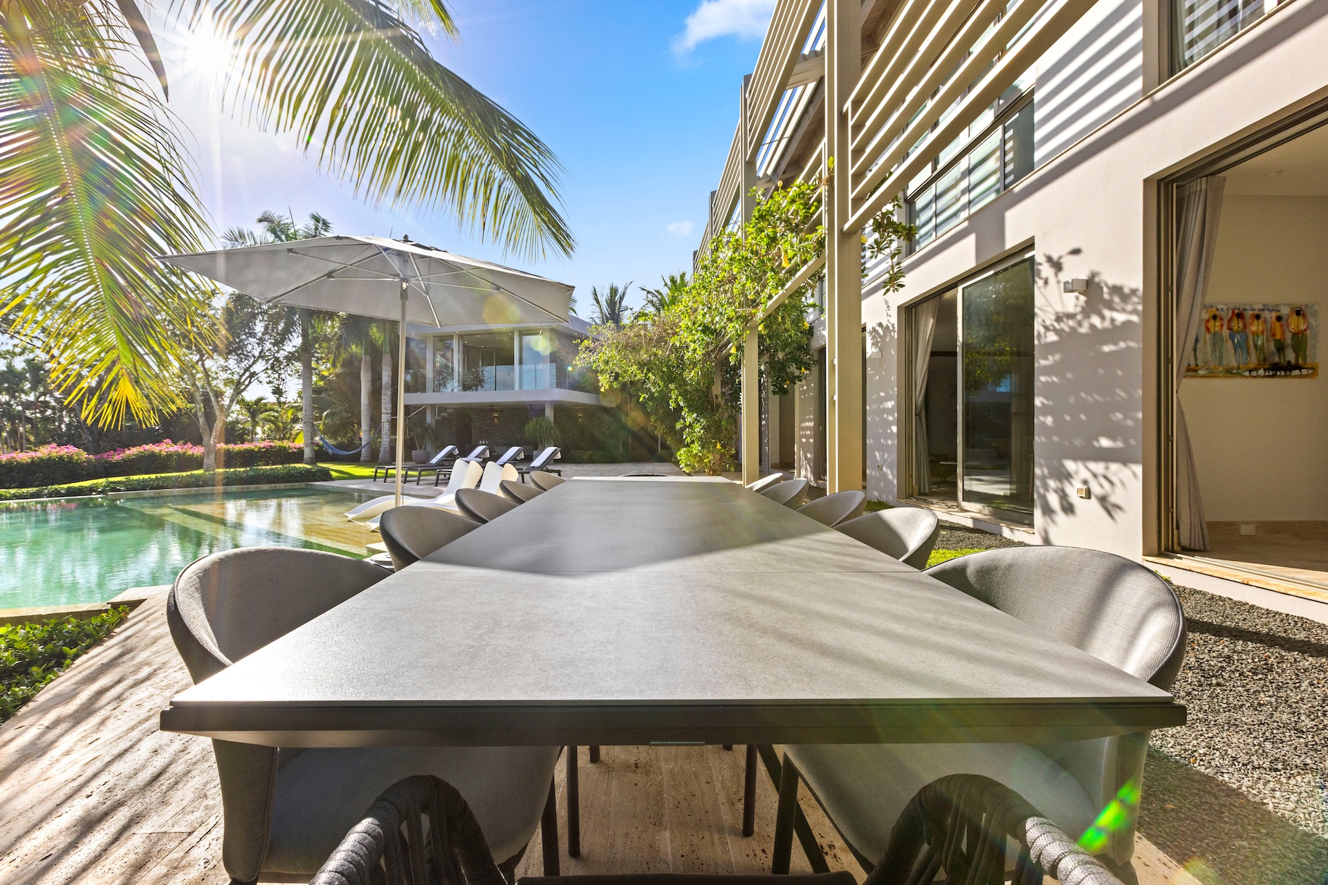 Les terrasses élégantes, la piscine privée et les jardins tropicaux créent une atmosphère idéale pour se détendre sous le soleil de la République dominicaine. De plus, l’intimité de la propriété permet de partager des moments privilégiés en famille ou entre amis.