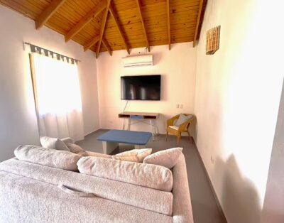 La villa est entièrement meublée et équipée, et peut accueillir jusqu’à 7 personnes. Elle dispose de 3 chambres doubles et 3 salles de bains. La villa dispose également d’une cuisine entièrement équipée, d’un salon, d’une salle à manger et d’une terrasse.